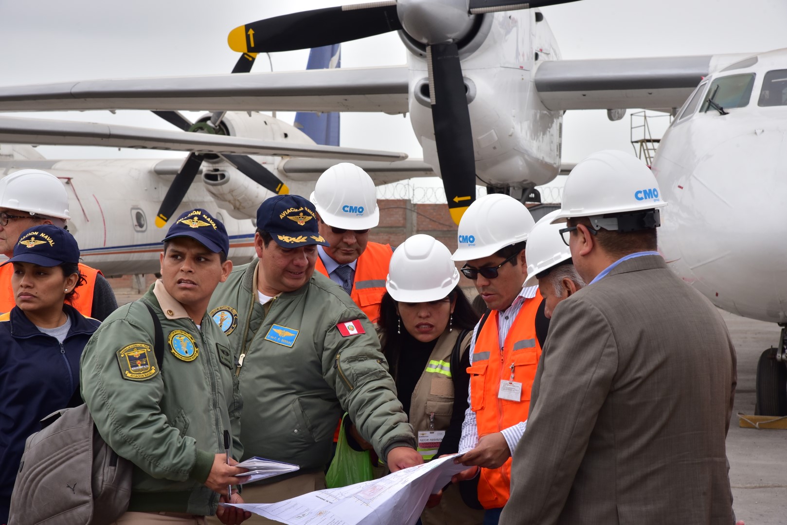 CMO GROUP SA en conjunto con su socia, la prestigiosa empresa Italiana PIZZAROTTI , recibio el terreno e inició el día de ayer , la construcción de la Nueva Base Aeronaval del Callao , la obra de infraestructura militar más importante de este país , que estará al servicio de nuestra gloriosa marina de guerra del Perú y contará con más de 44 mil M2 de área construida , que incluyen una torre de control reglamentaría , 7 Hangares para el mantenimiento de aeronaves , áreas administrativas ,áreas de confort para el personal , oficiales y subalternos entre otras .