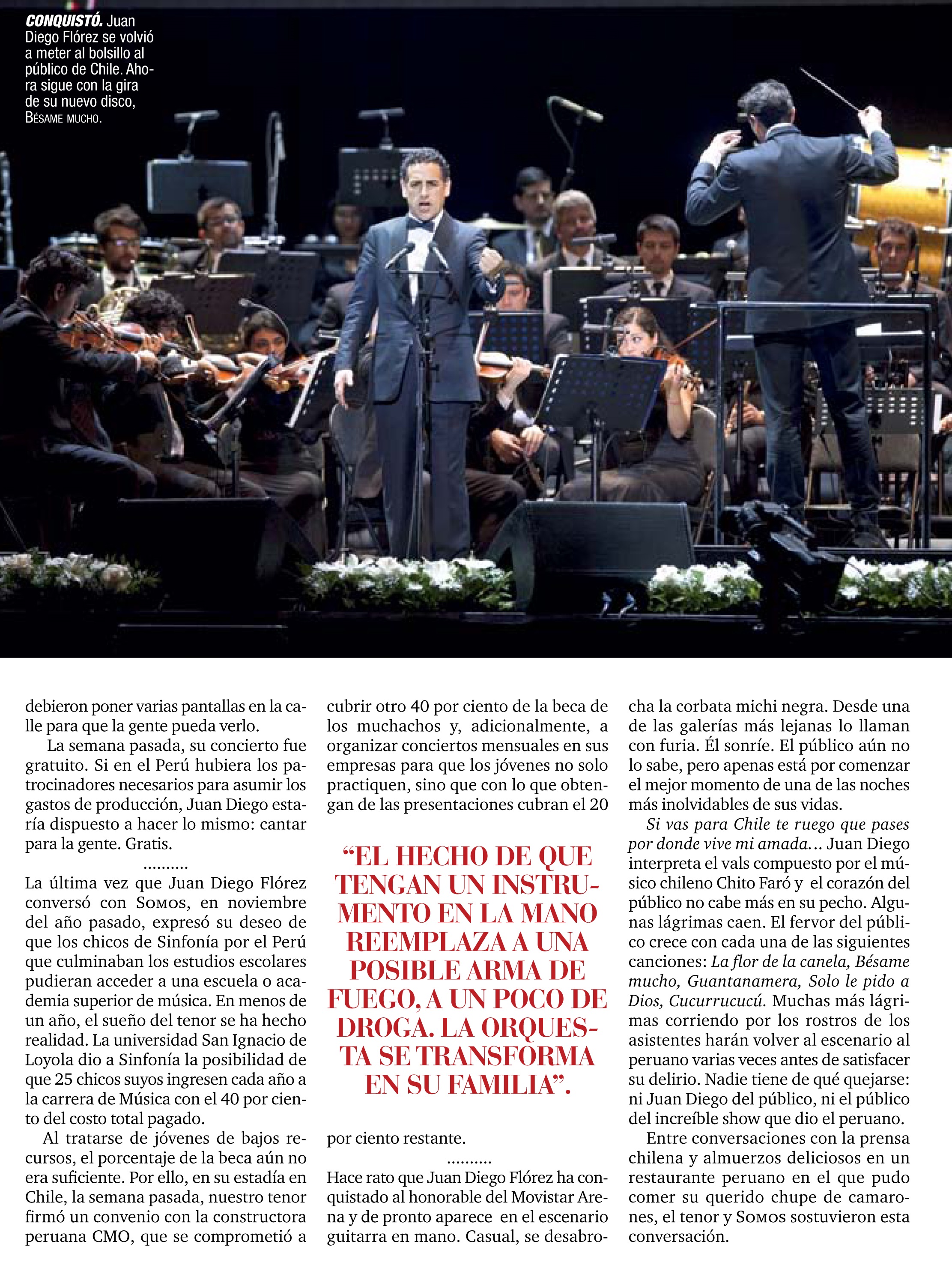Revista SOMOS del diario El Comercio informa sobre el importante convenio firmado entre CMO GROUP y nuestro famoso tenor JUAN DIEGO FLÓREZ durante su brillante presentación en Santiago de Chile .